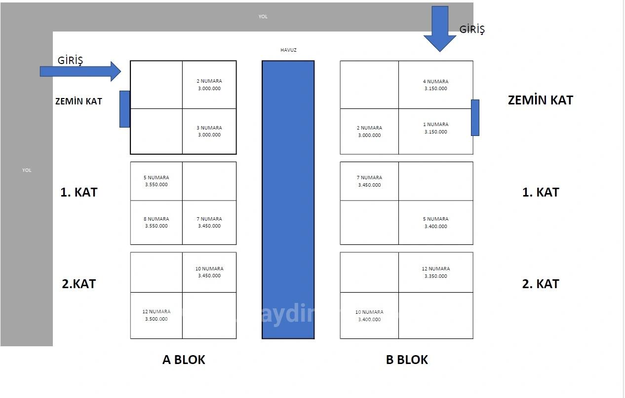 **GİRİŞ KATLARDA 3.000.000 TL DEN BAŞLIYOR ÜST KATLARDA 3.350.000 TL DEN BAŞLAMAKTADIR